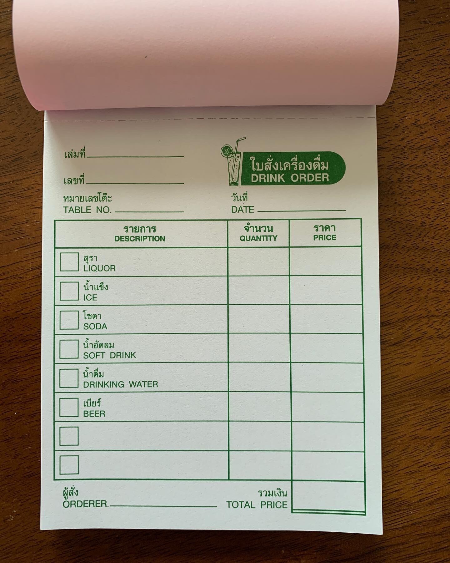 タイ・ドリンクオーダー帳